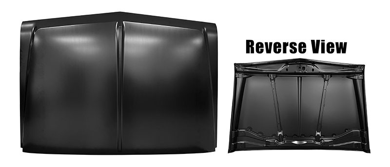 This 1969-72 C-10 truck "laid back" hood gives the look of the 67-68 C-10 without having to change the entire front clip. This hood works with stock 69-72 C-10 fenders.